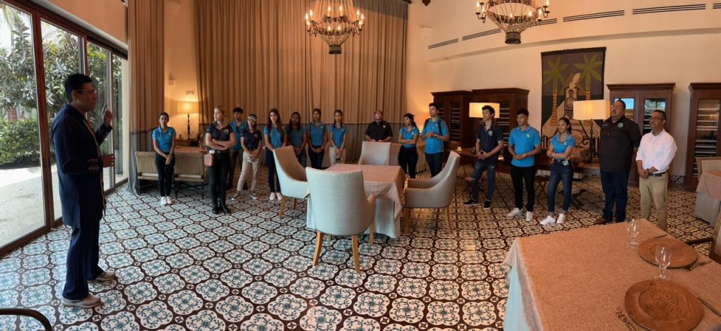 Esta visita fue gracias a la invitación de la gerencia, con el propósito fundamental de otorgar a los estudiantes una comprensión profunda y holística de las distintas facetas que componen un hotel de categoría cinco estrellas. Desde el primer momento, el equipo de gestión del hotel recreó para los aprendientes la cálida bienvenida que un huésped experimenta al llegar, inculcándoles así el valor de la excelencia en el servicio. Además, los estudiantes participaron de una conferencia magistral que abarcó tanto la historia del proyecto como sus características sobresalientes.